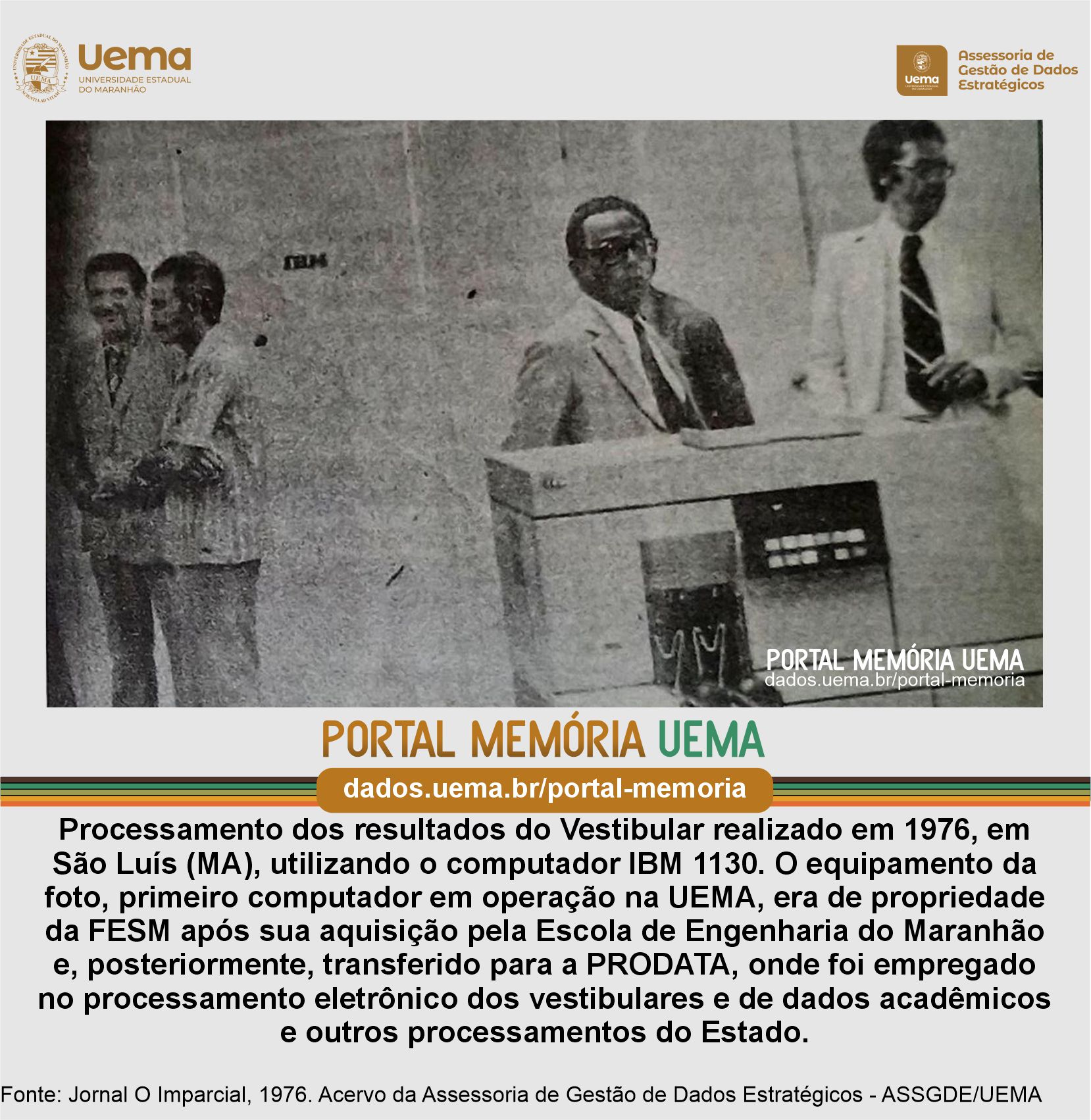 As informações contidas no convênio firmado entre a Fundação Universitária do Maranhão (FUM, atual UFMA) e a FESM, em 1974, confirmam que o IBM 1130, já instalado no Centro de Processamento de Dados da Escola de Engenharia do Maranhão, era, de fato, o primeiro computador do estado. Isso porque a FUM alugava esse equipamento para uso na modalidade “block-time”. Essa informação foi confirmada por José Henrique Pereira Macêdo, egresso do curso de Engenharia Civil da Escola de Engenharia do Maranhão e professor aposentado do Centro de Ciências Tecnológicas – CCT/UEMA.